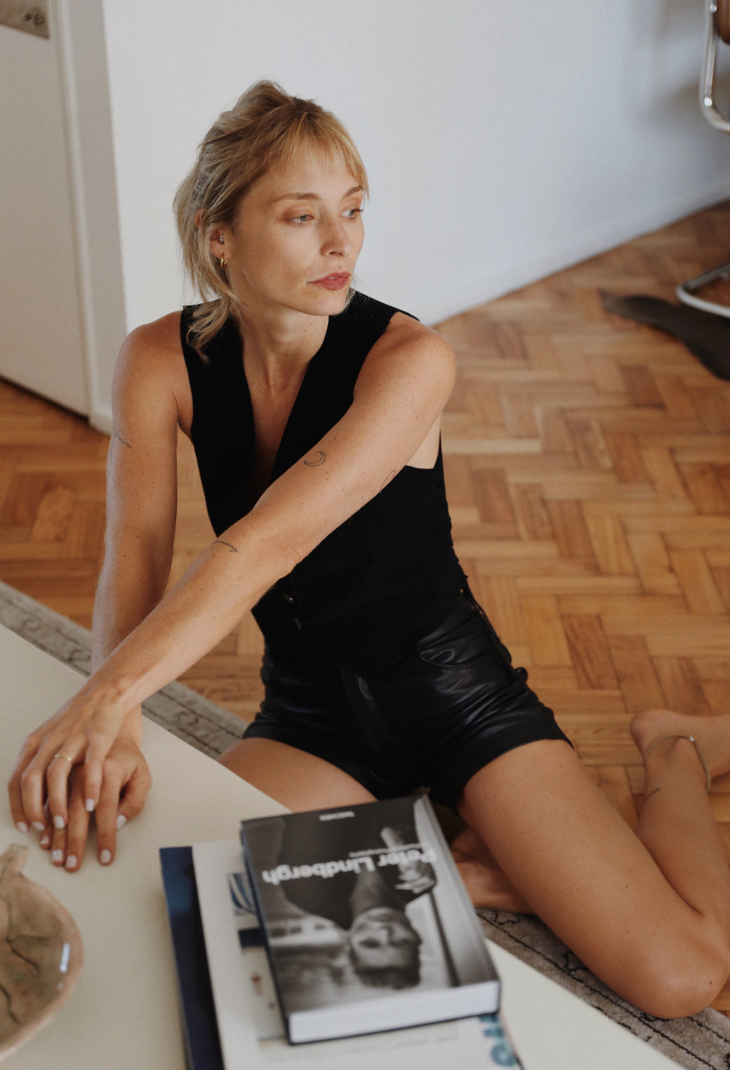 Short de cuero 100% genuino con boton en carey. Hecho a mano en Argentina ¡Una prenda que te durará para siempre!