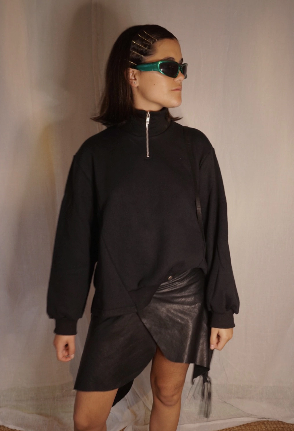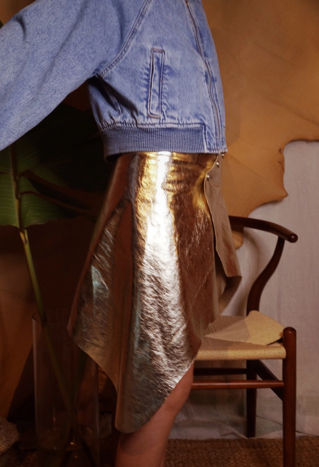 Pollera de 100% cuero, irregular, con 3 botones que te dan la versatilidad de usarla tiro alto o tiro bajo.