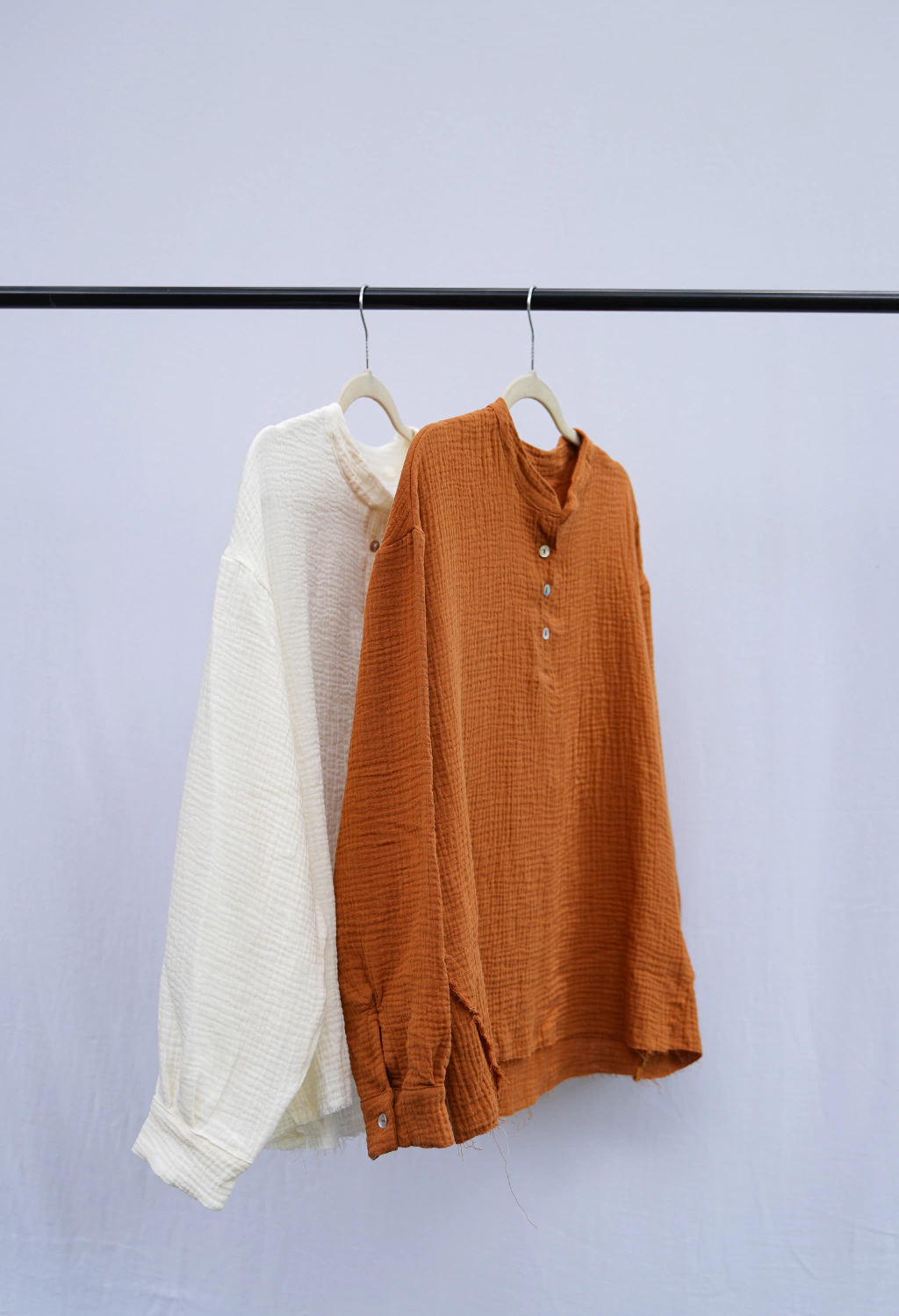 Camisa cuello mao a la base, de baby cotton 100% algodón.